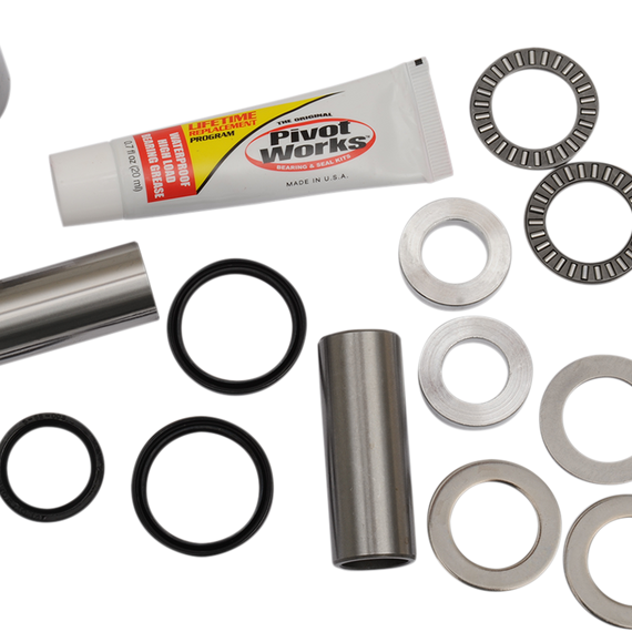 Caracteristicas: Restore handling and suspension control lost due to worn or rusted swingarm components Convenient kit eliminates looking up many part numbers Each kit contains bearings, pins, collars and seals manufactured to OEM specifications for a perfect fit Considerable savings over OEM prices
