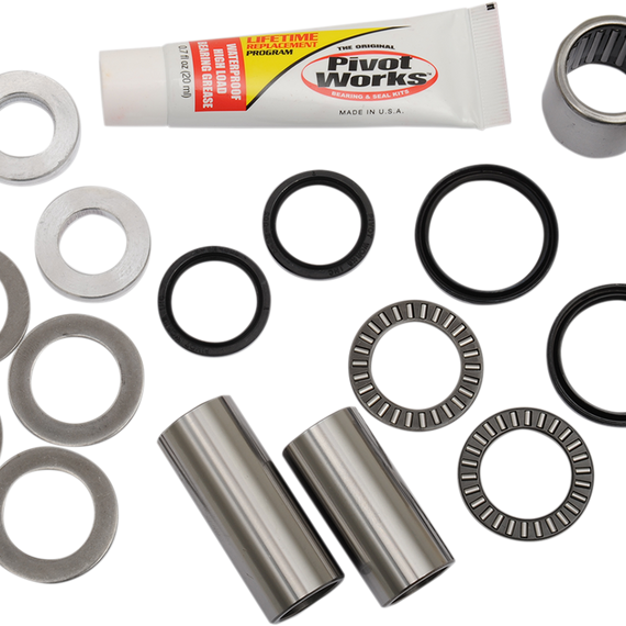 Caracteristicas: Restore handling and suspension control lost due to worn or rusted swingarm components Convenient kit eliminates looking up many part numbers Each kit contains bearings, pins, collars and seals manufactured to OEM specifications for a perfect fit Considerable savings over OEM prices
