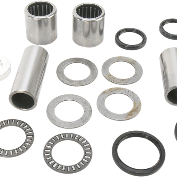 Caracteristicas: Restore handling and suspension control lost due to worn or rusted swingarm components Convenient kit eliminates looking up many part numbers Each kit contains bearings, pins, collars and seals manufactured to OEM specifications for a perfect fit Considerable savings over OEM prices