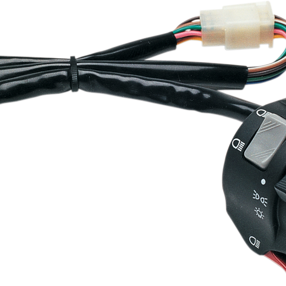 Caracteristicas: All feature turn signal with right-, left- and center-push canceling; headlight with high-low beam; parking setting and horn Fit 7/8" handlebars 25" overall wire length with 9-pin connector