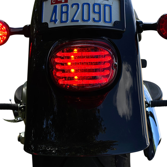 Caracteristicas: ProBEAM Integrated taillight combines 5 LED running light pipes with full contrast red brake LEDs with built in left and right amber auxiliary turn signals The low profile design protrudes only two inches from the stock taillight baseplate for a sleek, custom, all-in-one solution for the rear fender Replacement gasket and nylon washers included for easy plug and play installation into OEM taillight circuit board DOT and SAE compliant run/brake light