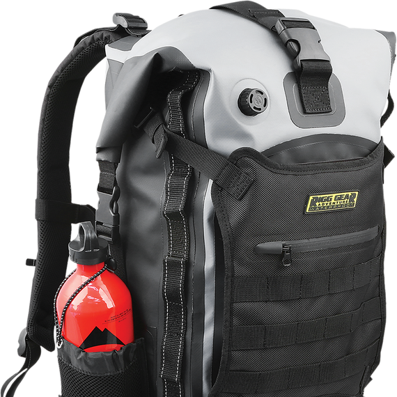 Caracteristicas: 100% waterproof, all seams are electronically heat welded Made from durable UV Coated 24oz Tarpaulin PVC Water tight roll closure with quick release buckles Bag can seal in 2 different closure methods, over the top or down the sides Extra-large buckle ensures roll stays closed in all environments Air purge valve makes for compression easy Reflective webbing and external bungee storage system Inner sleeve to hold most folders, notebooks, tablets and up to 15” laptops Included quick-release buckles convert bags into the perfect waterproof tail packs Removable MOLLE panel is reversible with waterproof document/map pocket Integrated front pocket to hold optional hydration bladder (CL-HYDRO-S not included) 2 Side mesh pockets large enough to hold 30 Oz. fuel bottles (Bottles not included) Backpack straps are 3-way adjustable and padded for comfort Padded back panel with airflow system