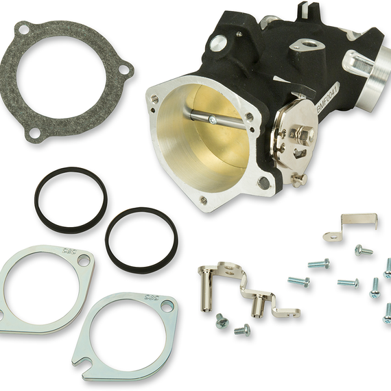 Caracteristicas: Requires throttle body specific Stealth air cleaners (available separately) for 58mm and 66mm bodies Sealed, stainless steel throttle shaft with dual roller bearings for smooth operation and no air leaks One-piece throttle body/manifold design for easy installation and stock appearance Compatible with stock sensors, fuel rail and throttle cables Throttle bodies include hardened steel flanges and seals Black powder coat finish matches stock More air flow for improved performance Made in the U.S.A. Some S&S heads have additional material on the manifold surface to allow the use of a stock length manifold (405) on a 124" engine. If you are not sure which manifold should be ordered, check fitment with the stock manifold first.