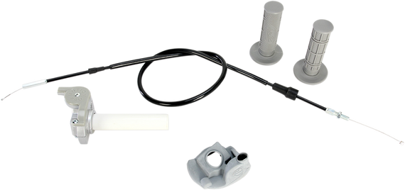 Caracteristicas: Fastest twist rate Motion Pro throttle Made from die-cast aluminum with a gray finish and gray rubber mud cover Design is similar to most late-model Japanese MX bikes Available as a kit with the appropriate cable