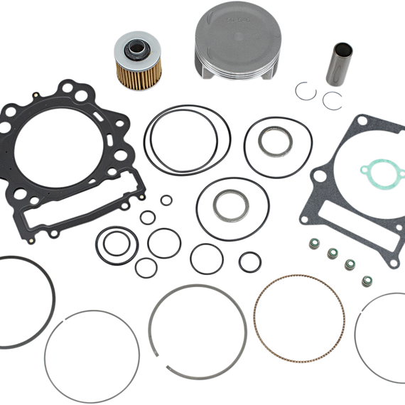 • Includes pistons, rings, pins, clips, needle bearings, head and base gaskets and intake and exhaust gaskets and oil filter for 4-stroke models
