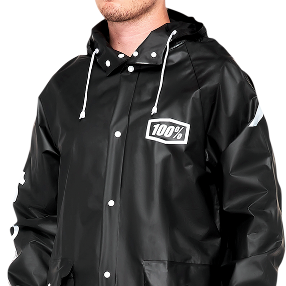 Caracteristicas: 100 % EVA rain jacket Welded body pocket and pocket flaps Cape back vent with snap for increased breathability Adjustable hood with drawcord Front placket with snap buttons Adjustable cuffs with snap closures Long 3/4 length jacket for coverage
