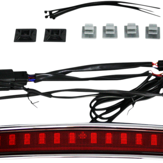 Caracteristicas: Add decorative visibility to the rear of your tour pak with the addition of our High Mount Tour Pak LED Light 32 50/50 LEDs for run and brake with 16 LEDs per side for red turn signal on most models Unit comes pre-taped to adhere to the top of the Harley-Davidson 2014-current King & Chopped style tour paks Includes plug and play wire harness for simple installation Fits models with stock LED King Tour-Pak®. Also Fits models with add-on '14-'20 King Tour-Pak® or Chopped Accessory Tour-Pak®. Typically models with Turn-Only rear turn signals function as Run/Turn only.
