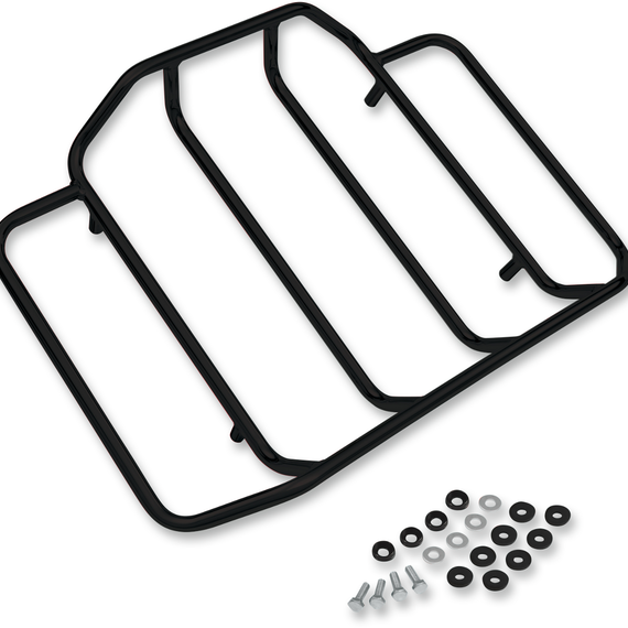 Caracteristicas: Luggage Rack is custom designed to match the lines of the Harley trunk Exclusive Black Smoke™ chrome finish Rack is a generous 20.25" x 14" and accommodates large luggage tour bag Includes all hardware for mounting