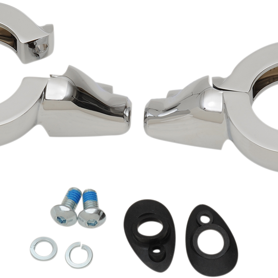 Caracteristicas: Die-cast construction For mounting/relocating turn signals on front fork tubes Feature a shroud that hides the turn signal hardware and wiring for a clean look when installed 5/16" non-threaded mount holes Mounting hardware included