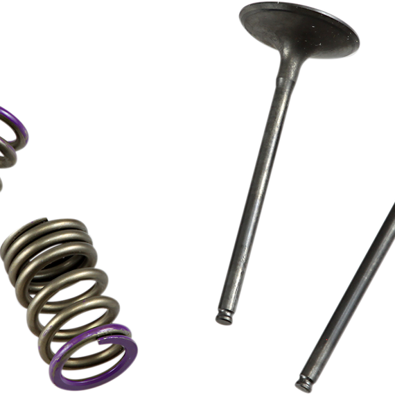 Caracteristicas: Replaces the OEM valves and valve springs Steel, nitrided valves for increased durability and less wear under extreme conditions Stronger valve springs deal with the extra weight of the steel valves Springs are made from premium chrome vanadium steel for higher performance and durability at high rpm Kit contains a set of steel intake or exhaust valves plus a set of specially designed valve springs; can be installed using the OEM retainers, bases and valve seals