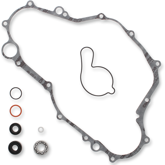 • Typical kit includes the following: bearings where applicable; rubber seals; mechanical water pump seal where applicable; side cover gasket; water pump gasket; snap rings located on water pump shaft and copper drain washers