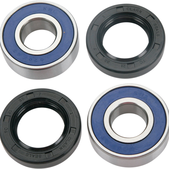 Caracteristicas: Bearing seals are double-lipped rubber that provides superior exclusion of water, dirt and sand with improved grease retention Steel garter spring guarantees constant pressure on the axle shaft, extending the life of the seal Wheel seals are type TC nitrile elastomer, specifically designed to keep out water, dirt and sand Seals have a rubber-coated outside diameter that creates an optimum seal at the hub High-speed, low-drag bearings are EMQ quality Kits include all required bearings and seals