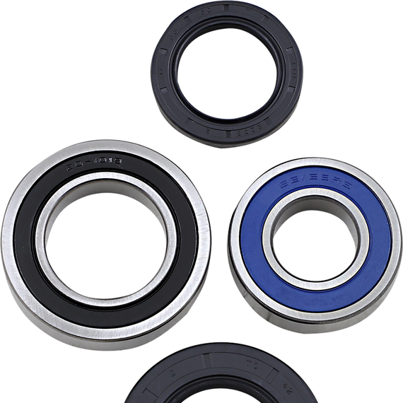 Caracteristicas: Bearing seals are double-lipped rubber that provides superior exclusion of water, dirt and sand with improved grease retention Steel garter spring guarantees constant pressure on the axle shaft, extending the life of the seal Wheel seals are type TC nitrile elastomer, specifically designed to keep out water, dirt and sand Seals have a rubber-coated outside diameter that creates an optimum seal at the hub High-speed, low-drag bearings are EMQ quality Kits include all required bearings and seals