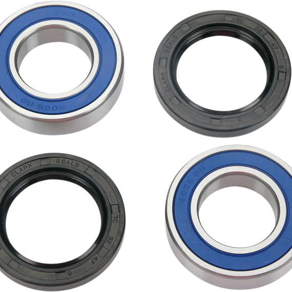 Caracteristicas: Bearing seals are double-lipped rubber that provides superior exclusion of water, dirt and sand with improved grease retention Steel garter spring guarantees constant pressure on the axle shaft, extending the life of the seal Wheel seals are type TC nitrile elastomer, specifically designed to keep out water, dirt and sand Seals have a rubber-coated outside diameter that creates an optimum seal at the hub High-speed, low-drag bearings are EMQ quality Kits include all required bearings and seals