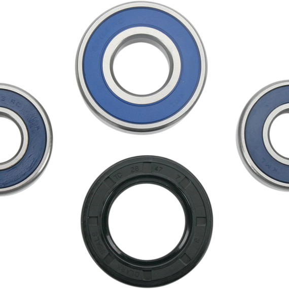 Caracteristicas: Bearing seals are double-lipped rubber that provides superior exclusion of water, dirt and sand with improved grease retention Steel garter spring guarantees constant pressure on the axle shaft, extending the life of the seal Wheel seals are type TC nitrile elastomer, specifically designed to keep out water, dirt and sand Seals have a rubber-coated outside diameter that creates an optimum seal at the hub High-speed, low-drag bearings are EMQ quality Kits include all required bearings and seals