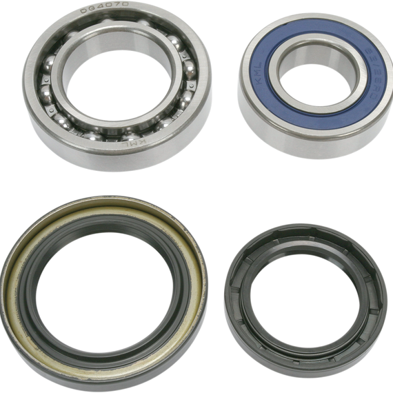 Caracteristicas: Bearing seals are double-lipped rubber that provides superior exclusion of water, dirt and sand with improved grease retention Steel garter spring guarantees constant pressure on the axle shaft, extending the life of the seal Wheel seals are type TC nitrile elastomer, specifically designed to keep out water, dirt and sand Seals have a rubber-coated outside diameter that creates an optimum seal at the hub High-speed, low-drag bearings are EMQ quality Kits include all required bearings and seals