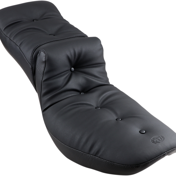 Caracteristicas: Split foam construction on a single steel base plate Well-padded and features a leather-like expanded vinyl covering Designed to keep driver from sliding forward Made in the U.S.A.