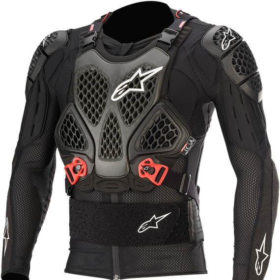 Caracteristicas: Slim fit stretchable fabric for a comfortable fit. Features a floating, highly ventilated and flexible rigid chest protector with flexible side wings that adapt to the rider's body. Central front zipper for a better fit and ease of donning. Additional front padding on the arms, sides and chest for enhanced roost protection. High abrasion resistant fabric on the arms over the protectors for additional protection. Height adjustable kidney belt for optimal levels of fit. BNS compatible with a removable back puck panel and elastic BNS cords on the shoulder straps. Cell technology back protector is highly ventilated and flexible for enhanced rider comfort. Water bladder compatible.