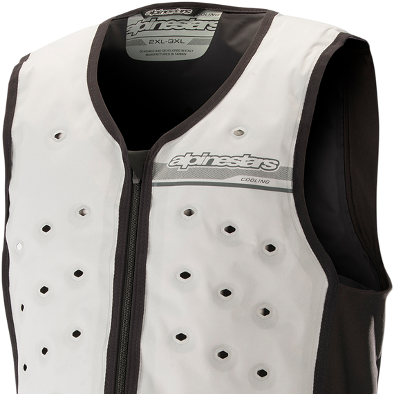 Caracteristicas: Three-layer textile construction with moisture-wicking fleece lining Anatomical fit with stretch inserts on side torso Strategically positioned ventilation for airflow and breathability Innovative core cooling system evenly releases moisture during rides Lightweight chassis with refillable water chamber for repeat use Vest features anti-bacterial properties