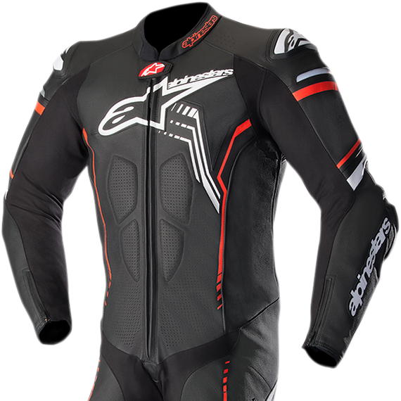 GP Plus v2 1-Piece Leather Suit - Black/Red Fluorescent - US 44 / EU 54
