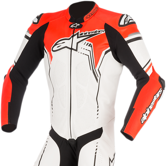 GP Plus v2 1-Piece Leather Suit - White/Black/Red Fluorescent - US 48 / EU 58