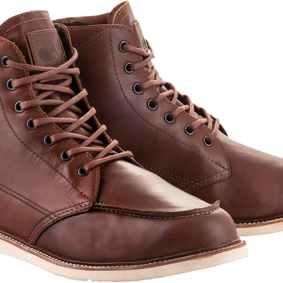 Caracteristicas: Hand-finished leather upper Toe box and heel counter internal reinforcement give structured support and impact resistance Anatomical backed dual-density Thermoplastic Polyurethane (TPU) ankle disk protection Removable microfiber footbed features anatomically shaped arch and heel with Lycra® top layer for comfort Rear leather accordion collar for comfort Heel pull tab designed to avoid catching the pant leg Plush 3D highly breathable mesh inner liner Gusseted tongue to keep out wind, water and dirt Moccasin toe seam scored to add strength Toe padded and uniquely patterned to work excellently with the gear shifter Subtle heel for registering the foot pegs Oil-resistant rubber compound sole with exclusive grip pattern on sole Metal eyelet lacing closure system