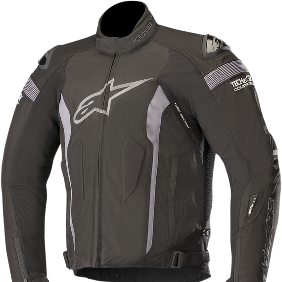 Caracteristicas: T-Missile Drystar® Jacket Tech-Air® Compatible jacket is a fully featured all weather sport riding jacket with a range of class-leading fit and comfort features, such as stretch zones for improved mobility, zippered air intakes for guaranteed internal air cooling and a waterproof DRYSTAR® membrane. Multifabric shell construction incorporating advanced poly-textile and stretch fabric for performance and comfort Microfiber comfort edge on collar and cuffs Two zippered hand pockets Waist connection zipper allows attachment to Alpinestars riding pants Embroidery logos and direct print graphic details Zippered air intake vents are strategically positioned for optimized airflow when opened Reflective details Front inner waterproof pocket Bio Armor shoulder and elbow protectors Dynamic Friction Shield (DFS) external dual density TPU sliders on shoulders Tech-Air® race vest compatible