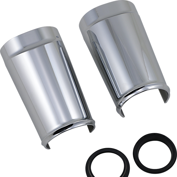 Caracteristicas: Features notched inside surfaces to allow direct bolt-on fitment of 18” x 5.5” wide/fat front fenders and wheel kits on touring models Universal design accepts all aftermarket fat/wide front fender kits Fork boots will work with factory and aftermarket fork legs CNC-machined from billet aluminum Check clearances when installing with fat front wheel/fender applications.
