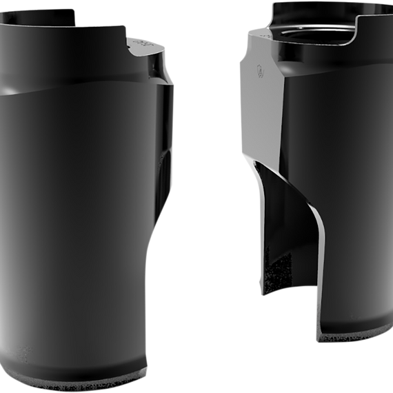 Caracteristicas: Features notched inside surfaces to allow direct bolt-on fitment of 18” x 5.5” wide/fat front fenders and wheel kits on touring models Universal design accepts all aftermarket fat/wide front fender kits Fork boots will work with factory and aftermarket fork legs CNC-machined from billet aluminum Check clearances when installing with fat front wheel/fender applications.