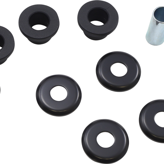 Caracteristicas: Black coated versions of the Industry leading polyurethane dampening kits A must when installing new handlebars or bikes with heavy engine vibration Eliminates flex while isolating vibration Proprietary polyurethane bushings are specially made to reduce vibration as well as add a more positive and rigid feel to your handlebar Heavy duty cup washers will not bend or distort like factory units Each kit includes polyurethane bushings, inner steel sleeves and heavy duty black coated cup washers
