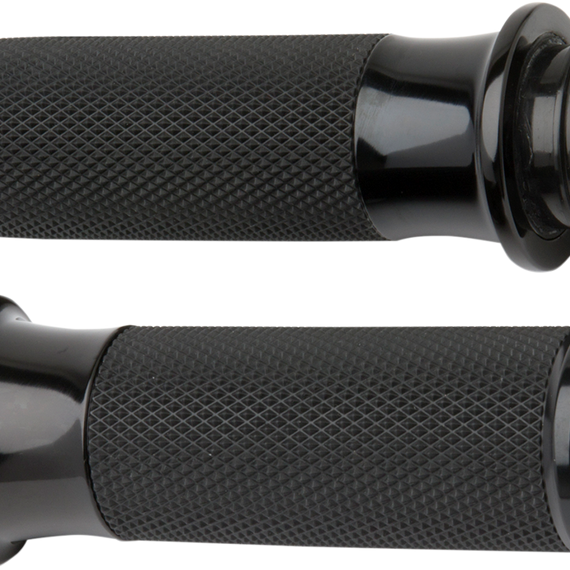 • Smooth design features 1-1/4" billet aluminum inner collars, diamond knurled rubber grips and billet aluminum end caps