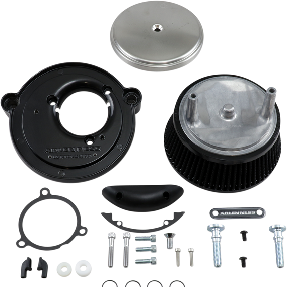 Caracteristicas: Each breather is O-ringed at the heads, passes through the backing plate and exits inside the mouth of the throttle body through proprietary breather tubes Kit includes one-piece backing plate, breather tubes, performance filter, filter top, gaskets, oil reservoir and necessary hardware New patent-pending hidden breather backing plate technology is a step up from our original patented system High performance filters are made from black pre-oiled cotton for the best in airflow and filtration Smooth radius air inlet for unobstructed air flow