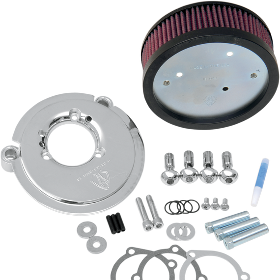 Caracteristicas: Each hidden breather is o-ringed at the heads and exits at the mouth of the injector/carb to provide efficient engine breathing, eliminating the need for any external hoses or hardware Standard red filters are pre-oiled, washable and feature four-layers of surgical grade cotton for optimum filtration and maximum airflow Synthetic filters feature a black synthetic material that is water resistant and never needs to be oiled; just wash and re-use Radius air inlet provides maximum performance by providing unobstructed airflow One-piece aluminum backing plate features patented hidden breather technology All necessary hardware and instructions are included with each kit
