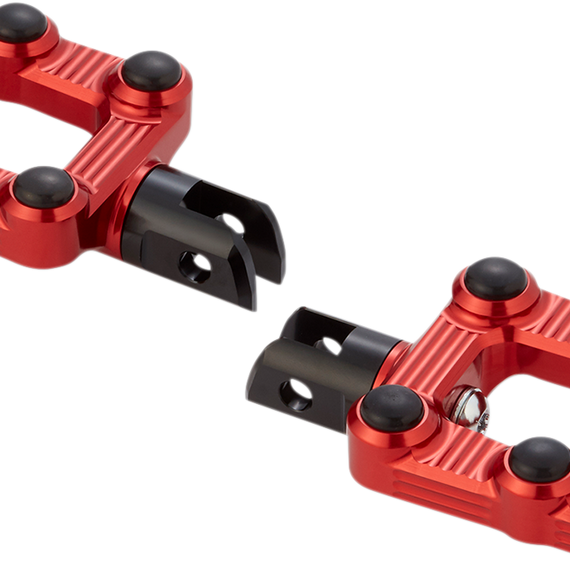 Caracteristicas: Ness MX foot pegs feature a lightweight cut through design with integrated rubber inserts resulting in a cut through design with excellent foot traction CNC machined from billet aluminum Each peg features CNC machined cuts on the top and side of the peg body for style that can be seen at every angle Rubber inserts offer foot traction and protect the finish of the peg, inserts are replaceable
