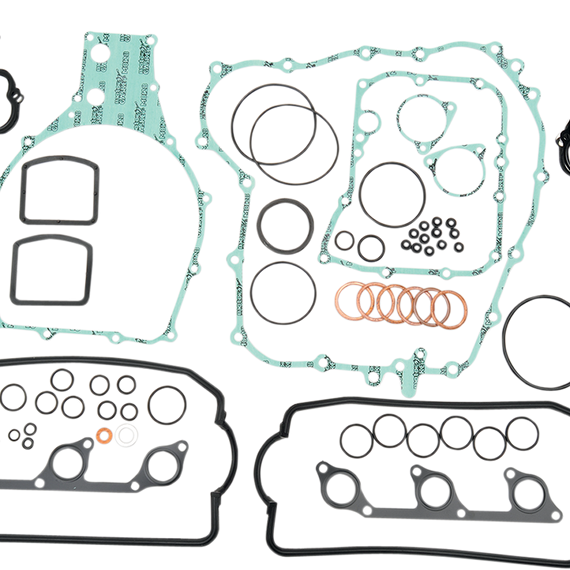Caracteristicas: Superior-quality gasket sets from Athena Head gaskets feature rubber-coated spring steel construction Soft steel base gaskets are rubber coated Steel core materials feature high springback and superior tensile strength Revolutionary transparent coating guarantees a perfect seal even at extremely high temperatures High-temperature blue silicone beading on most critical flat gaskets Includes all necessary top-quality gaskets, rubber parts and valve stem seals to rebuild top-end and complete engines respectively Oil seals not included