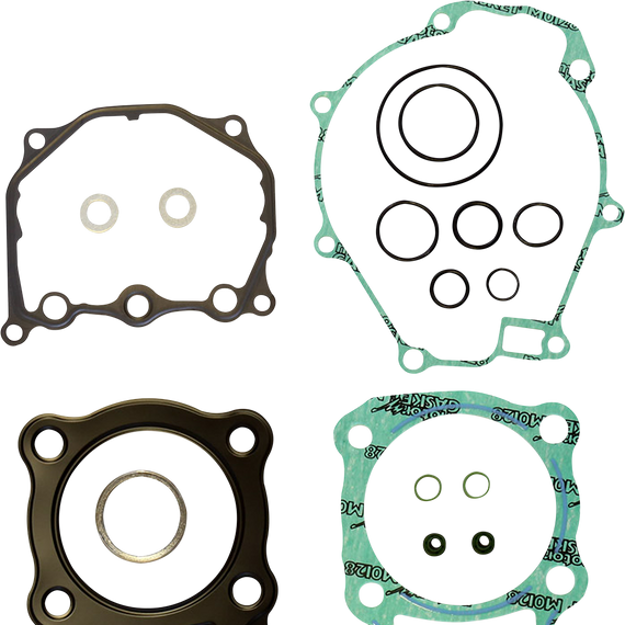 Caracteristicas: Superior-quality gasket sets from Athena Head gaskets feature rubber-coated spring steel construction Soft steel base gaskets are rubber coated Steel core materials feature high springback and superior tensile strength Revolutionary transparent coating guarantees a perfect seal even at extremely high temperatures High-temperature blue silicone beading on most critical flat gaskets Includes all necessary top-quality gaskets, rubber parts and valve stem seals to rebuild top-end and complete engines respectively Oil seals not included