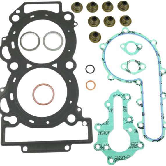 Caracteristicas: Superior-quality gasket sets from Athena Head gaskets feature rubber-coated spring steel construction Soft steel base gaskets are rubber coated Steel core materials feature high springback and superior tensile strength Revolutionary transparent coating guarantees a perfect seal even at extremely high temperatures High-temperature blue silicone beading on most critical flat gaskets Includes all necessary top-quality gaskets, rubber parts and valve stem seals to rebuild top-end and complete engines respectively Oil seals not included