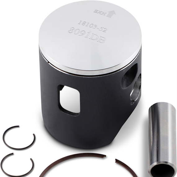 Caracteristicas: Two-stroke pistons are made from 4032 silicium Four-stroke pistons are made from 2618 silicium - the same material used to produce Formula 1 pistons Both include 3% copper in materials for better heat resistance All pistons are forged using a precision heat-treatment process that allows for production tolerances of just .005mm Forged piston tooling allows for the lightest available product Kits include antiwear coated piston, rings, pin and circlips