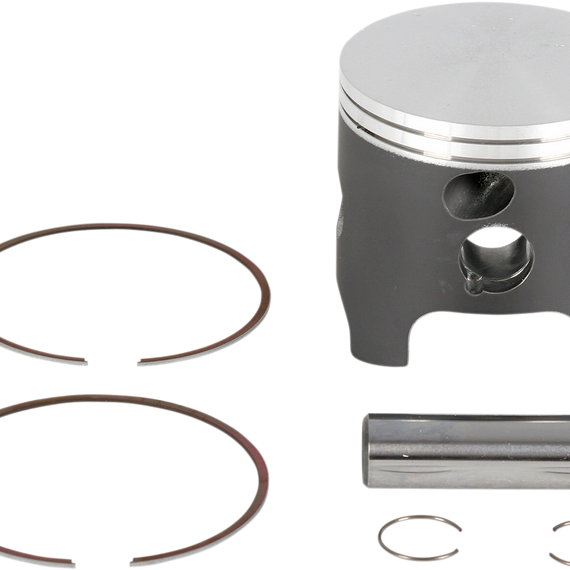 Caracteristicas: Two-stroke pistons are made from 4032 silicium Four-stroke pistons are made from 2618 silicium - the same material used to produce Formula 1 pistons Both include 3% copper in materials for better heat resistance All pistons are forged using a precision heat-treatment process that allows for production tolerances of just .005mm Forged piston tooling allows for the lightest available product Kits include antiwear coated piston, rings, pin and circlips