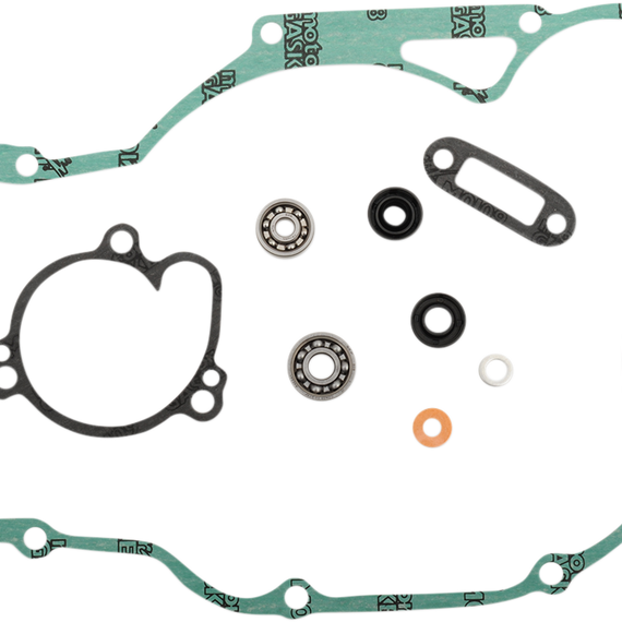 Caracteristicas: Include water pump gasket, clutch cover gasket, water pump shaft oil seals and washers Kit contents will vary slightly based on application Kits do not contain replacement bearings