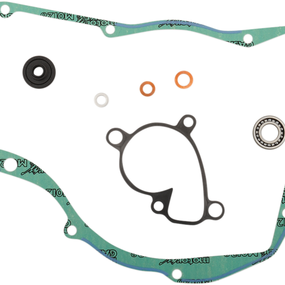 Caracteristicas: Include water pump gasket, clutch cover gasket, water pump shaft oil seals and washers Kit contents will vary slightly based on application Kits do not contain replacement bearings