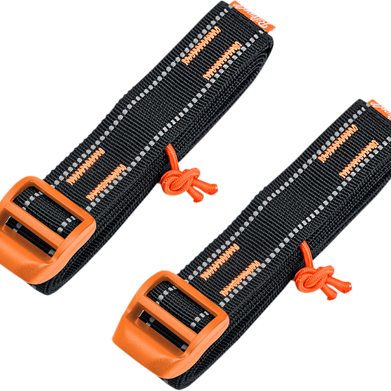 • These all-purpose tie-down straps without complicated metal buckles are perfect for securing gear to a motorcycle