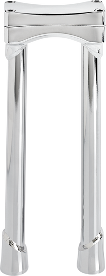 Caracteristicas: Investment-cast one-piece steel bar clamp accepts 1-1/8-inch O.D. handlebars 0.120-inch (3mm) wall x 1" O.D. 4130 chromoly uprights CNC lathe-turned mounting bases accept 1/2-13 t.p.i. stock and aftermarket mounting hardware Mounting holes on 3.5-inch centers to fit most stock and select aftermarket H-D fork trees Pullback Murdock risers feature mandrel-bent uprights for two inches of rearward bar offset—perfect for reducing reach for shorter riders TIG welded and hand polished before polishing Stainless-steel 5/16-18 t.p.i. bar clamp hardware