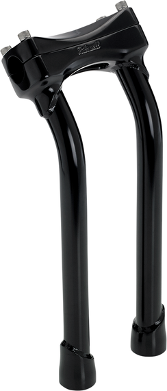 Caracteristicas: Investment-cast one-piece steel bar clamp accepts 1-1/8-inch O.D. handlebars 0.120-inch (3mm) wall x 1" O.D. 4130 chromoly uprights CNC lathe-turned mounting bases accept 1/2-13 t.p.i. stock and aftermarket mounting hardware Mounting holes on 3.5-inch centers to fit most stock and select aftermarket H-D fork trees Pullback Murdock risers feature mandrel-bent uprights for two inches of rearward bar offset—perfect for reducing reach for shorter riders TIG welded and hand polished before polishing Stainless-steel 5/16-18 t.p.i. bar clamp hardware