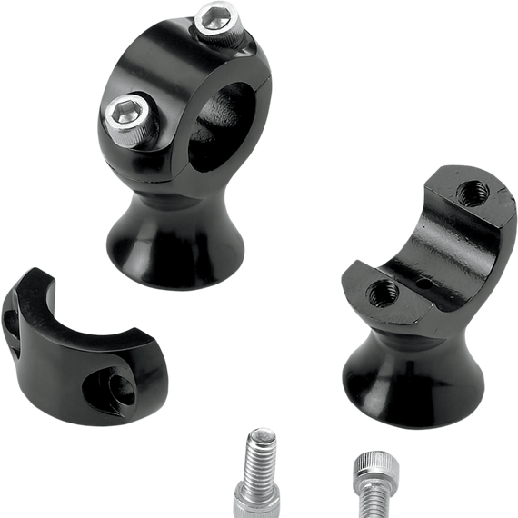 Caracteristicas: Investment-cast stainless steel construction Fit bars with 1" diameter in clamping area Bottom clamps accept stock 1/2" x 13 mounting hardware 5/16"-18 stainless steel Allen cap handlebar clamp screws