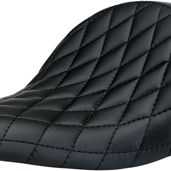 Caracteristicas: Same features and construction as Solo seats with a deeper side profile contour for bikes with steep backbones Heavy-gauge stamped steel pan with gently sloping rear kick for added support Stamped-in ridges on the pan increase stiffness and give the pan a clean, classic look with a matte black electroplated finish Covers are hand-stitched, heavy-duty black vinyl Foam is molded polyurethane, approximately 1” thick A unique carriage bolt system on the underside of the seat pan allows builders to fine tune the location of the seat hinge and both springs