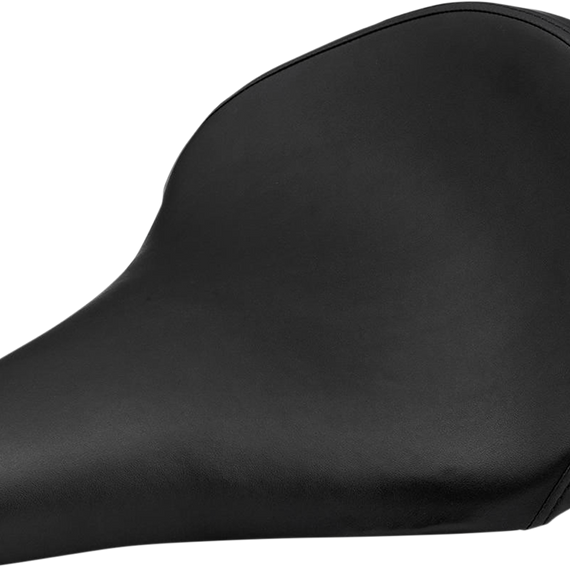Caracteristicas: 1/8" thick stamped steel pan with welded carriage bolts on nose and tail for spring and hinge mounting Stamped-in ridges on the pan increase stiffness and give the pan a clean, classic look with a matte black electroplated finish Covers are made of hand-stitched heavy-duty black vinyl Foam is molded polyurethane, approximately 1” thick Compared to the original Solo seat, the new Solo 2 has a shorter overall length and two more inches of kick in the tail to deepen the seating area and improve its visual flow on bikes with steep backbones
