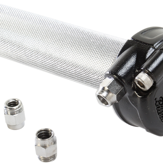 Caracteristicas: Cast aluminum clamshell and throttle tube Includes chrome-plated steel cable ferrules and plated Allen cap clamshell mounting hardware Cable ferrules are designed to fit stock H-D thread-in and clip-in cables Throttle grip tube is machined to accept rubber motorcycle grips