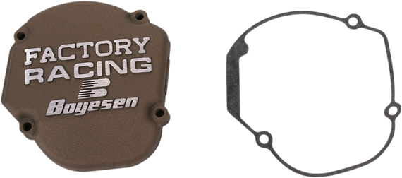 Caracteristicas: Look like a professional with the Factory Ignition Cover Seals properly, guarding inside of engine from dirt and water and outlasts stock covers Boyesen Factory Covers are cast from the highest grade of aluminum and are strong yet lightweight Super-tough, powder-coated finish resists weathering and wear and tear OEM paper gaskets can be reused, or use the supplied O-ring