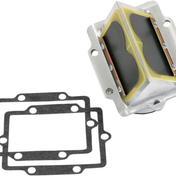 Caracteristicas: Maintain flow velocity through the valve and redirect intake charge for more even distribution to intake ports Provide quicker, sharper throttle response and more horsepower throughout rpm range Specially-designed reed cage holds Boyesen's patented dual-stage reeds Boyesen's hot RAD valves ratchet up your torque One-piece cast aluminum bolts in easily Order one set per cylinder